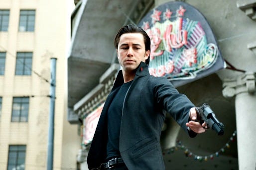 One brilliant story element is that the future is not set, so once the two loopers exist in the same time zone, freaky-deaky things can transpire. For example, anything that happens to the young looper becomes a part of the older looper's persona -- instantly altering their memory and even their body. In a horrifying early sequence, a friend of Joe's (Paul Dano) lets his loop get away. Then we witness some truly terrifying things happen to the older man, which is how we know what is happening to his younger version.
