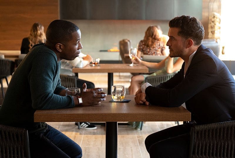 Nick (Leslie Odom Jr.) and Janine (Cynthia Erivo) are a couple living in marital bliss in the none-too-distant future where time travel is a reality if you’ve got the means to afford it. Nick’s concerned that Janine’s ex-husband and his former best friend Tommy (Orlando Bloom) has the money and motive to implement this technology to trash their marriage. In spite of Nick’s worries not being unfounded, it might be his own jealousy that derails he and Janine’s relationship as opposed to Tommy’s meddling.