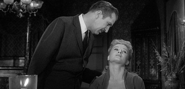 The movie in not really a supernatural or ghost story, rather it’s an elaborate mystery in which Price’s Frederick Loren outwits his wife, Annabelle (Carol Ohmart) and her lover, Dr. David Trent (Alan Marshal), who are planning to have him killed by one of the other guests.