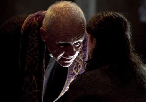 So, "The Rite" is a mix of real-world religious lore and Hollywood hooey. I wouldn't mind the sham, except the end result is generally not very compelling save for nice scenery-chewing by Hopkins in the latter section where his eyes change color and his skin goes blotchy and cracked (well, more so).