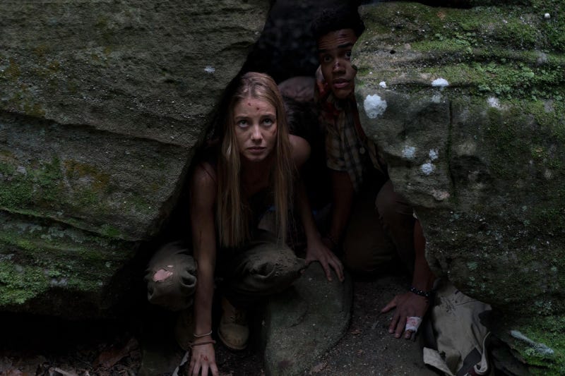 A group of six friends comprised of three couples – Jen (Charlotte Vega) and Darius (Adain Bradley), Milla (Emma Dumont) and Adam (Dylan McTee) and Gary (Vardaan Arora) and Luis (Adrian Favela) – leave the big city to take a rural vacation hiking the Appalachian Trail. The locals embodied by Nate Roades (Tim DeZarn, who played similar parts in “The Texas Chainsaw Massacre: The Beginning” and “The Cabin in the Woods”) don’t take kindly to the group as they contain couplings both interracial and gay and they’re all damned dirty hipsters in their eyes. It doesn’t help that Adam audibly judges and antagonizes the townies.